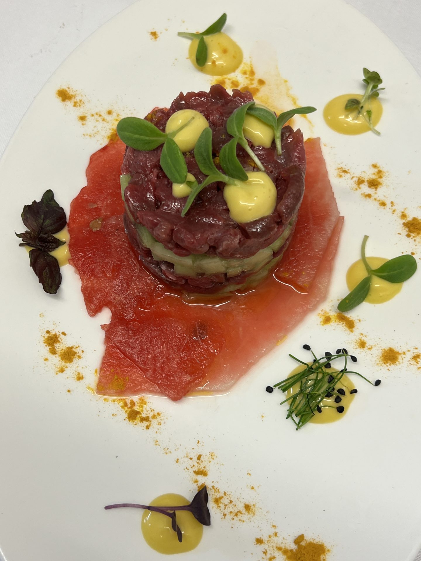 JELLOW FIN THUNA TATARE MIT GRÜNE APFEL UND  JOGHURT SAUCE UND LIMETTE
